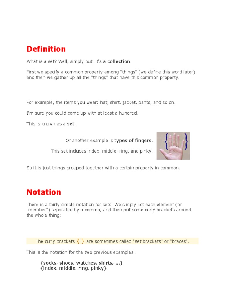 (Socks, Shoes, Watches, Shirts, ) (Index, Middle, Ring, Pinky) PDF Empty Set Set